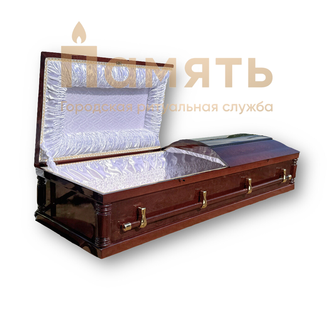 Гроб двухкрышечный саркофаг - ГД-4, длинный поручень, глянцевый, орех