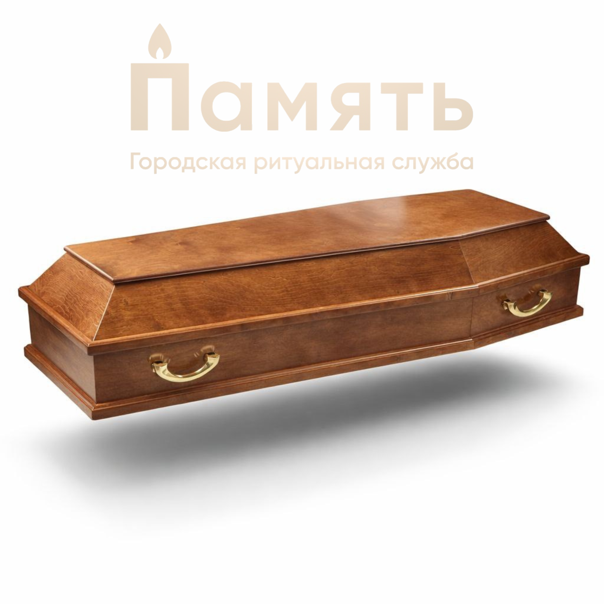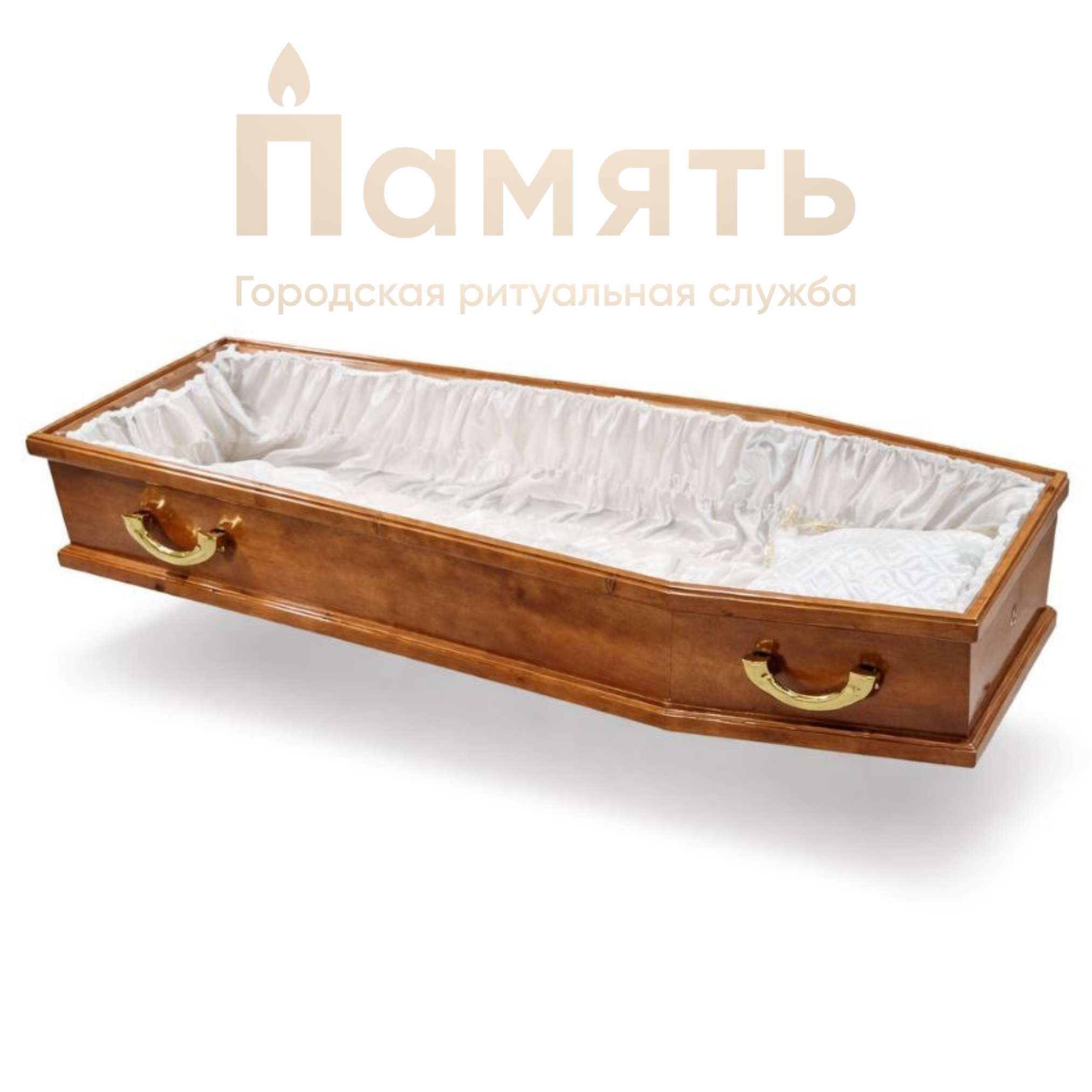 Гроб ГЛ-10 имеет шестиугольную форму. Крышка накладная. Изготовлен из ЛДСП и шлифованный МДФ. Дно выполнено из фанеры(берёза) Крышка и низ гроба выполнены из массива сосны, окрас гроба сделан максимально сохраняя структуру дерева.