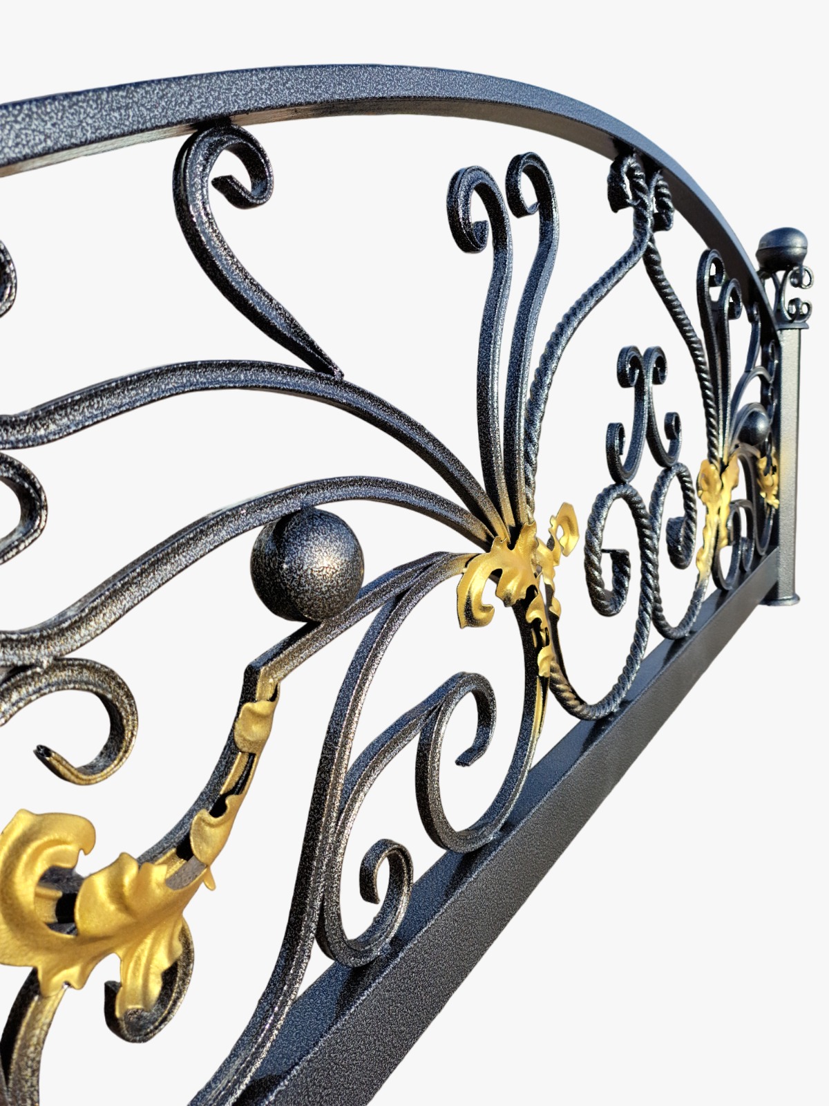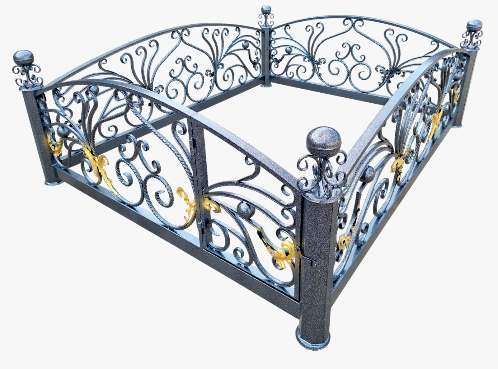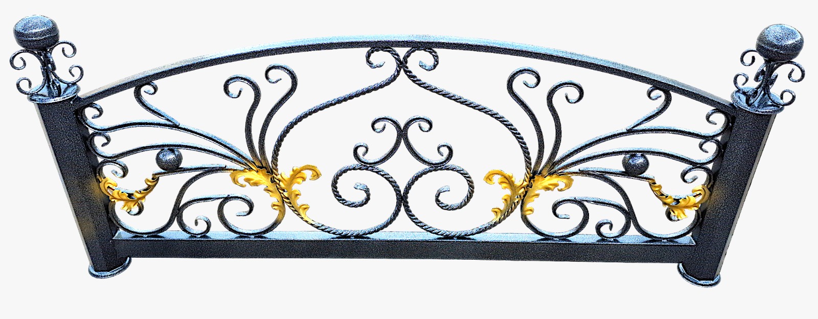 Заполнение: витые узоры из катанной профильной трубы 15х15 мм, узоры из витой трубы ø18 мм.