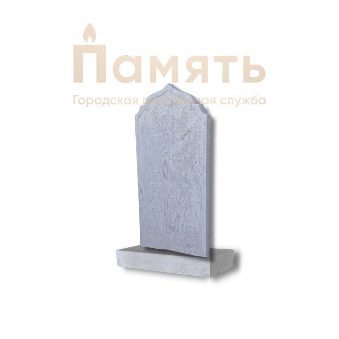 Памятник мусульманский Мечеть - Элегантный памятник, выполненный в традиционном мусульманском стиле. Форма верхней части памятника отражает архитектурные элементы мусульманских мавзолеев или мечетей — аркообразное завершение с остроконечной вершиной. По бокам памятник украшает декоративная резьба, придающая ему гармонию и симметрию. Подходит как для одиночного захоронения, так и для семейного мемориала.