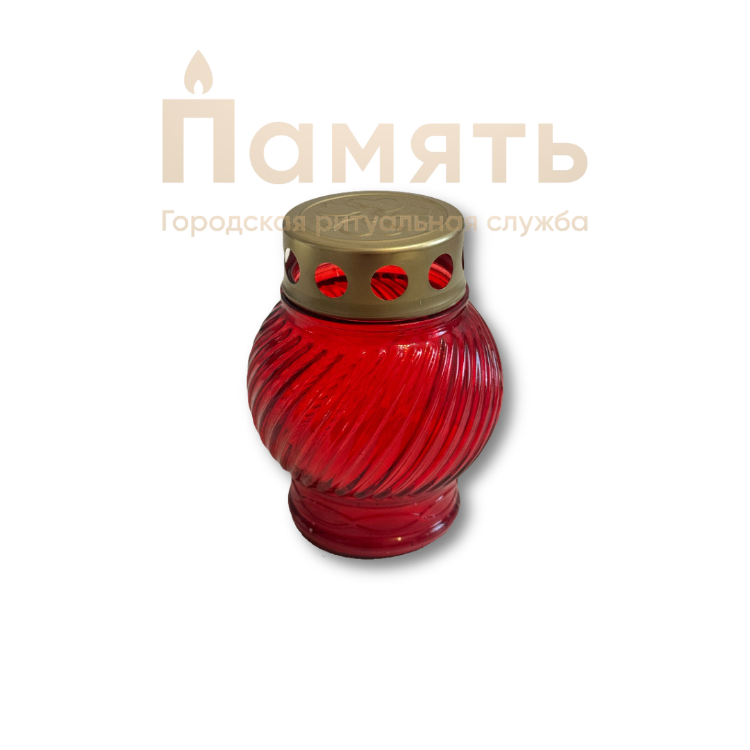 Лампада церковная, материал стекло. Лампаду устанавливают при возложении на могиле, чтоб свет не угасал и после церемонии, оставаясь знаком духовной связи и надежды.