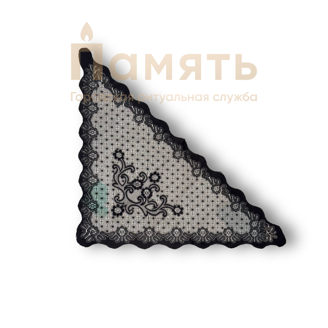 Косынка женская для горюющих, выполнена из гипюра с вышивкой (130х90см)