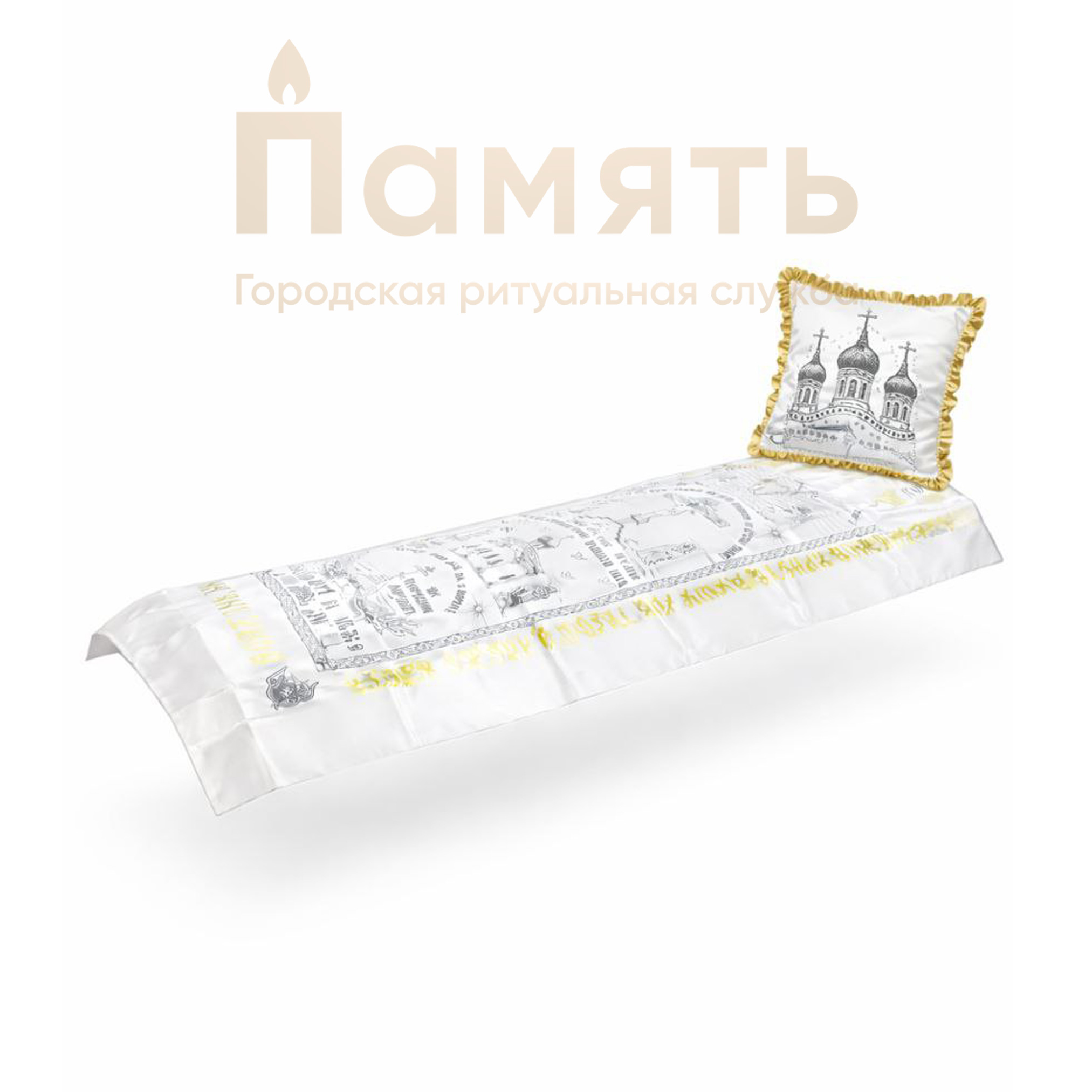 Погребальный набор - Саван с золотом, цвет белый. Набор 2 предмета, наволочка 46x40 см и покрывало 70x200 см