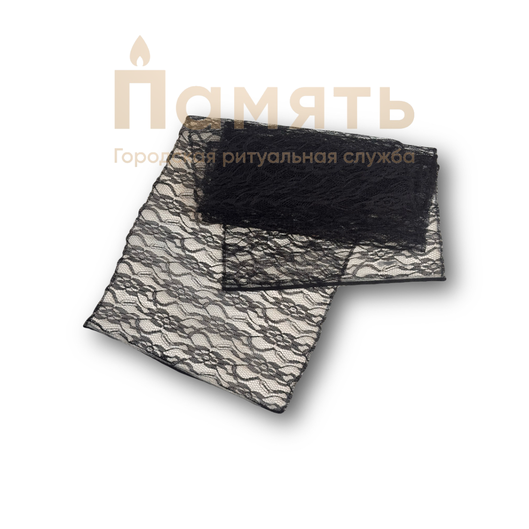 Шарф для горюющих, выполнен из гипюра с вышивкой (160х30см)