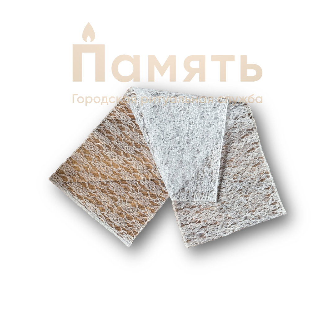 Шарф для горюющих, выполнен из гипюра с вышивкой (160х30см)