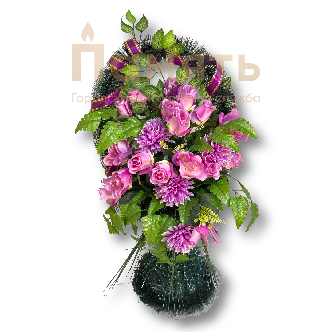 Корзина №100 - розовый из искусственных цветов, композиция имеет форму корзинки с цветами. Ни одна похоронная процессия не обходится без ритуальных, похоронных и траурных венков. Именно они помогают выразить скорбь, грусть и любовь к усопшему, являясь традиционным символом прощания.