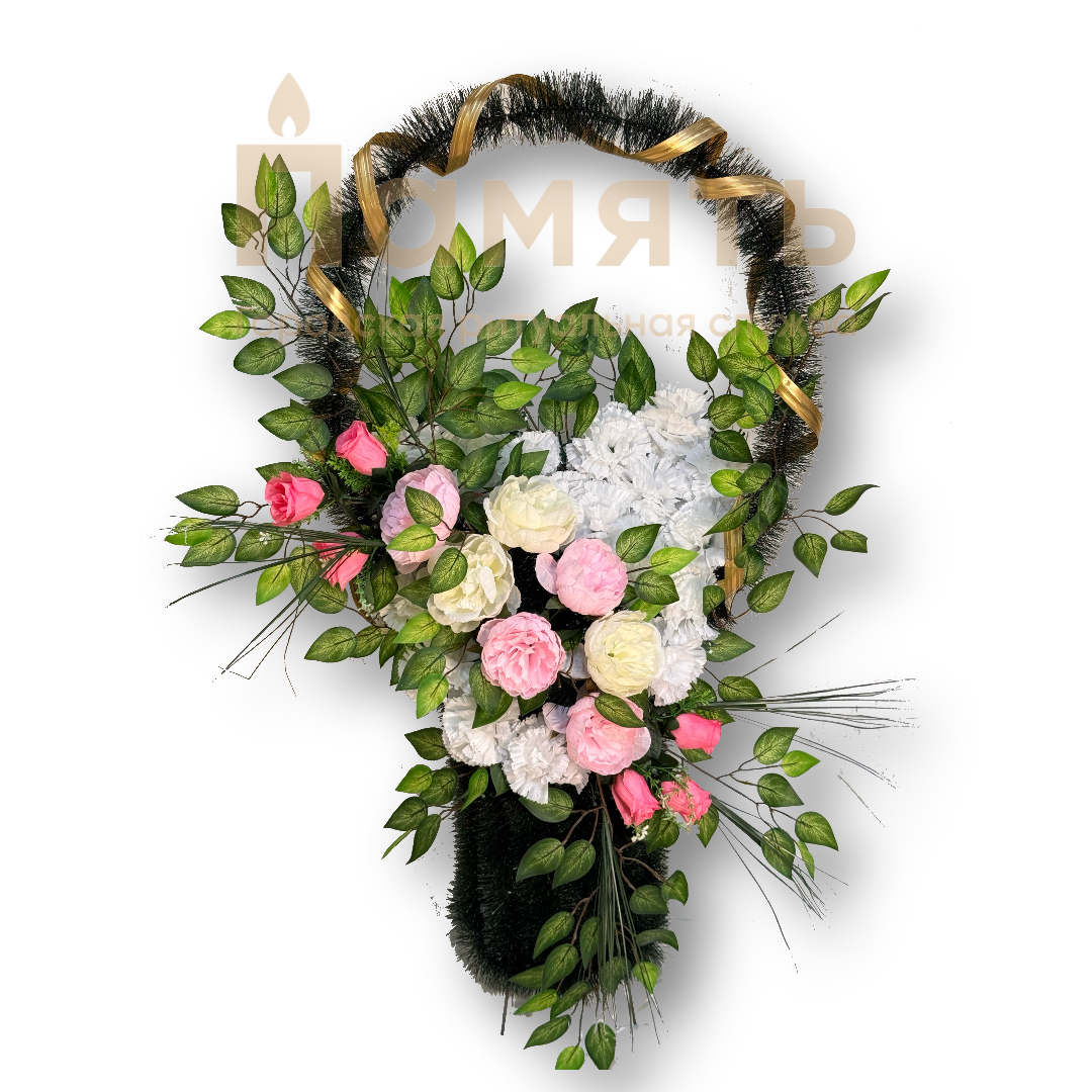 Корзина Сердце - белый - розовый из искусственных цветов, композиция имеет форму корзинки с цветами в форме сердца. Ни одна похоронная процессия не обходится без ритуальных, похоронных и траурных венков. Именно они помогают выразить скорбь, грусть и любовь к усопшему, являясь традиционным символом прощания.