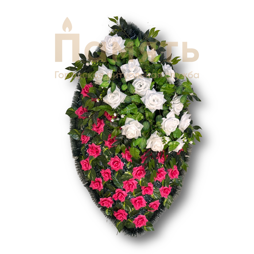 Венок Барселона - белый - розовый - композиция из искусственных цветов, традиционно овальной формы.