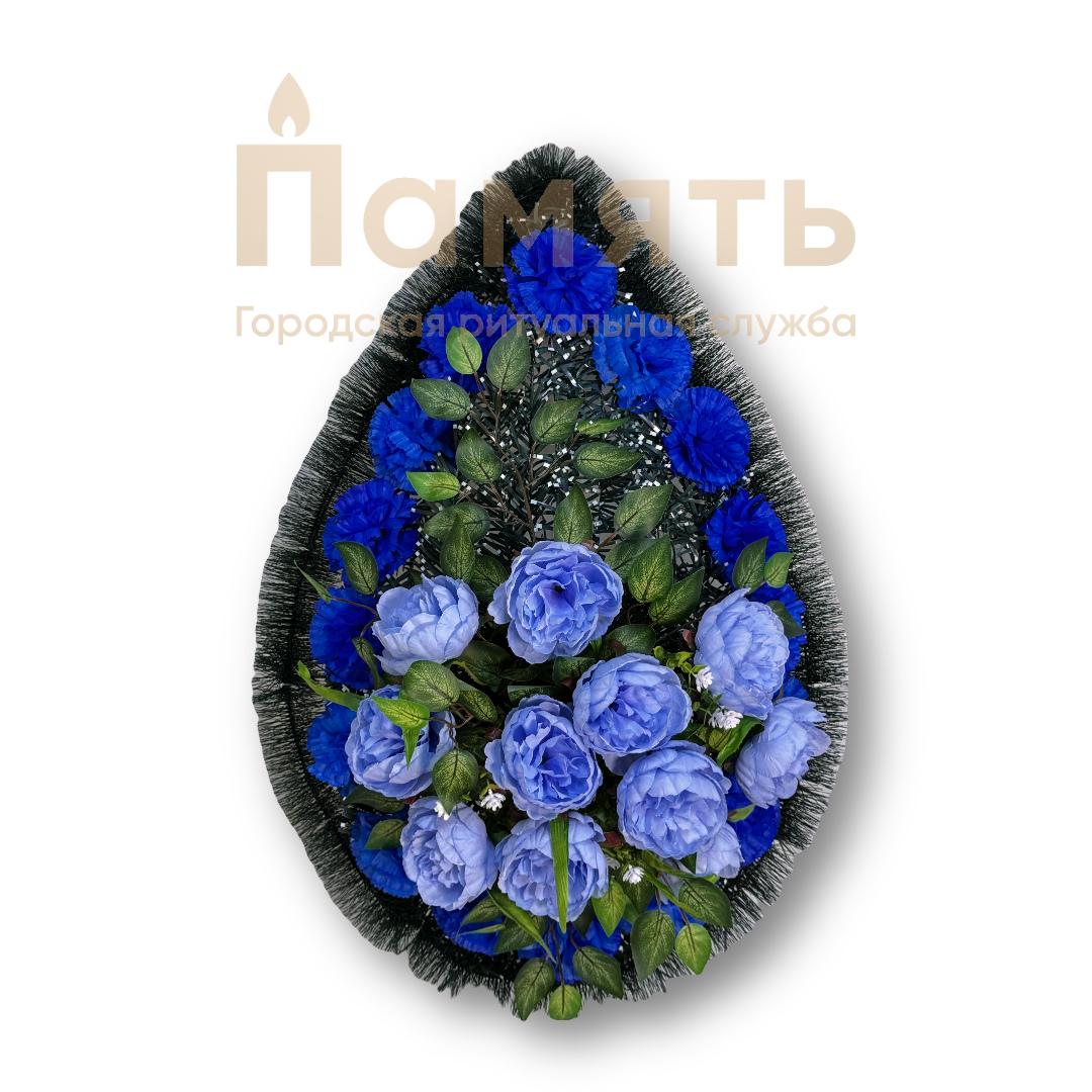 Венок Эсмеральда - синий, синий - композиция из искусственных цветов, традиционно овальной формы.