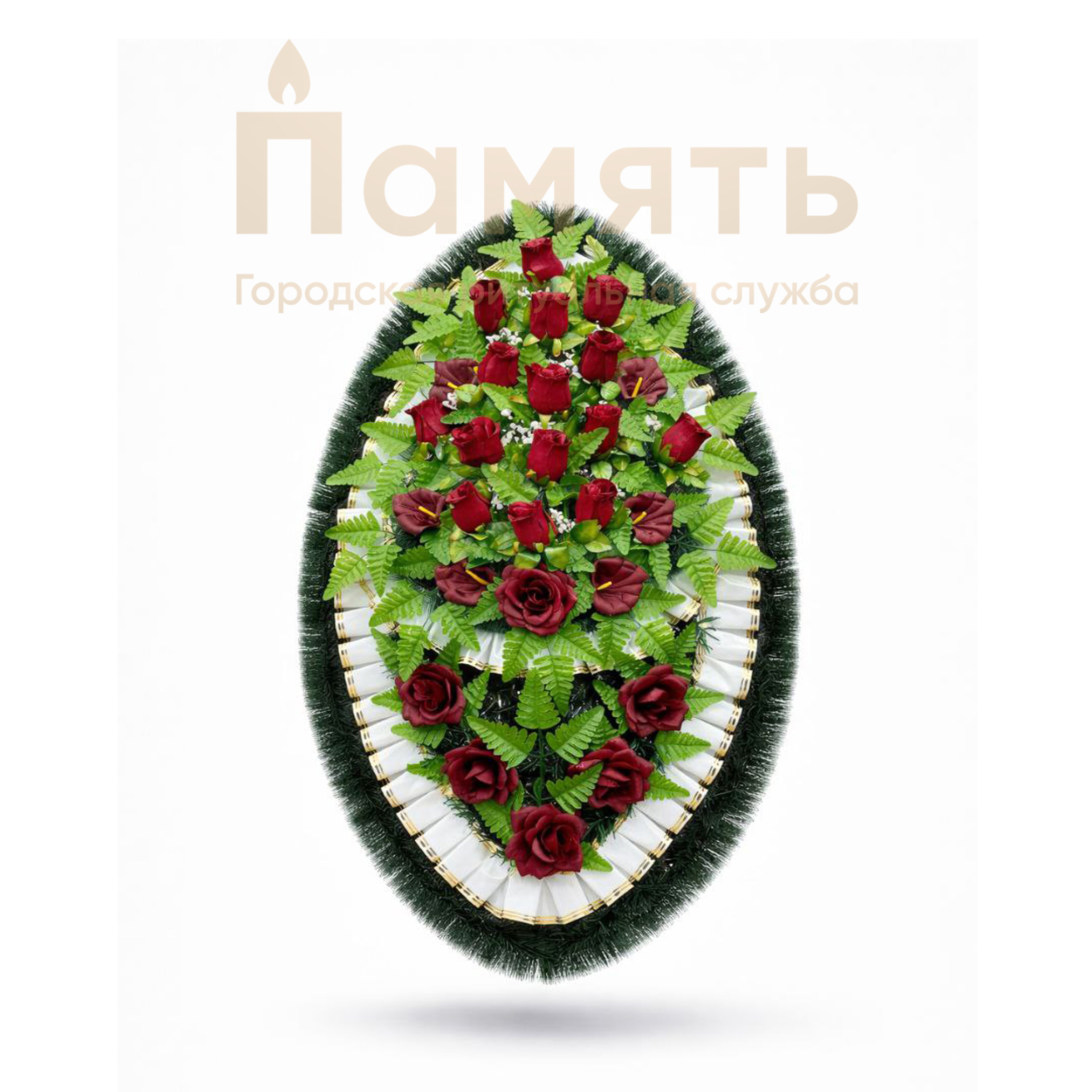 Венок Каспий - красный – белый - композиция из искусственных цветов, традиционно овальной формы.