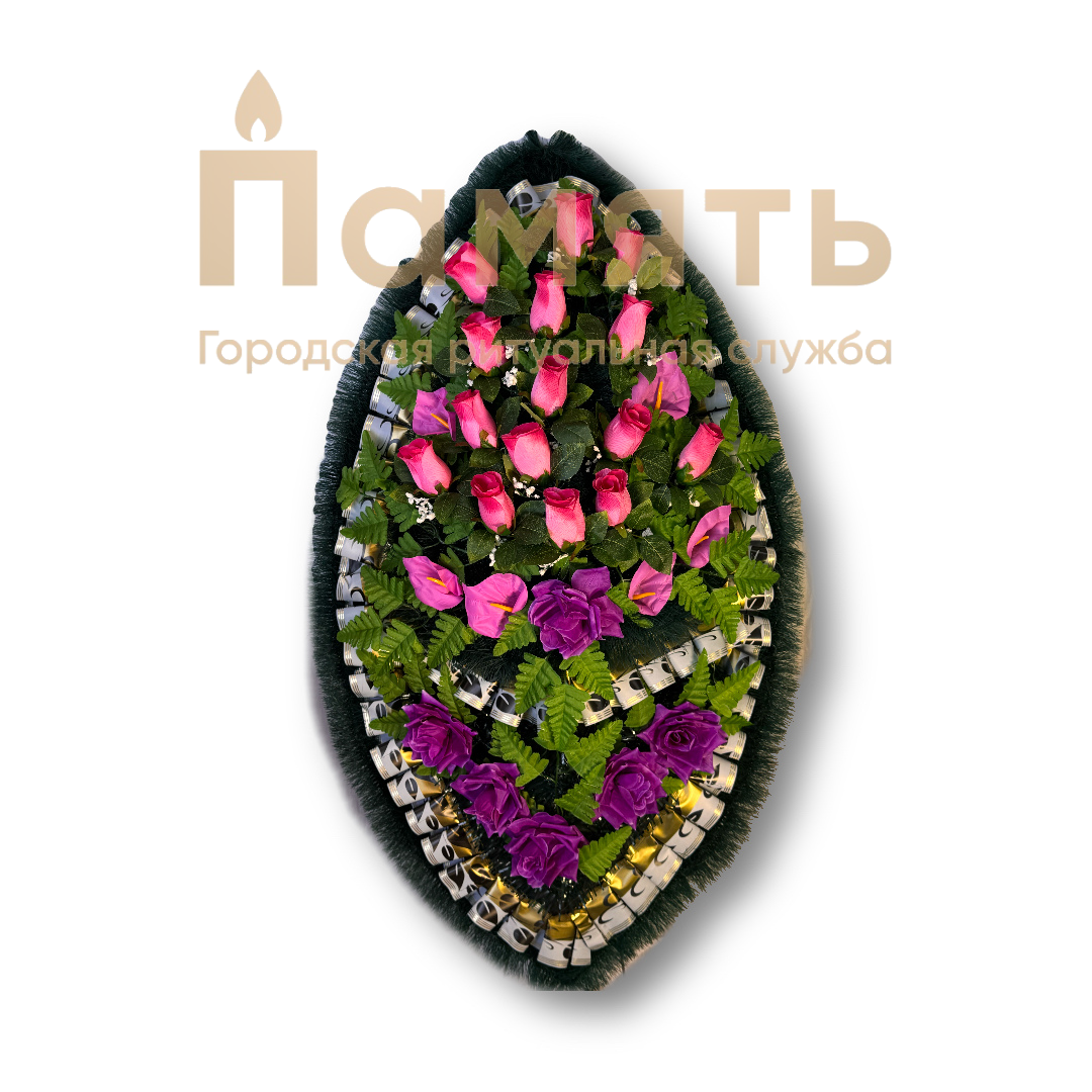 Венок Каспий - розовый – фиолетовый - композиция из искусственных цветов, традиционно овальной формы.