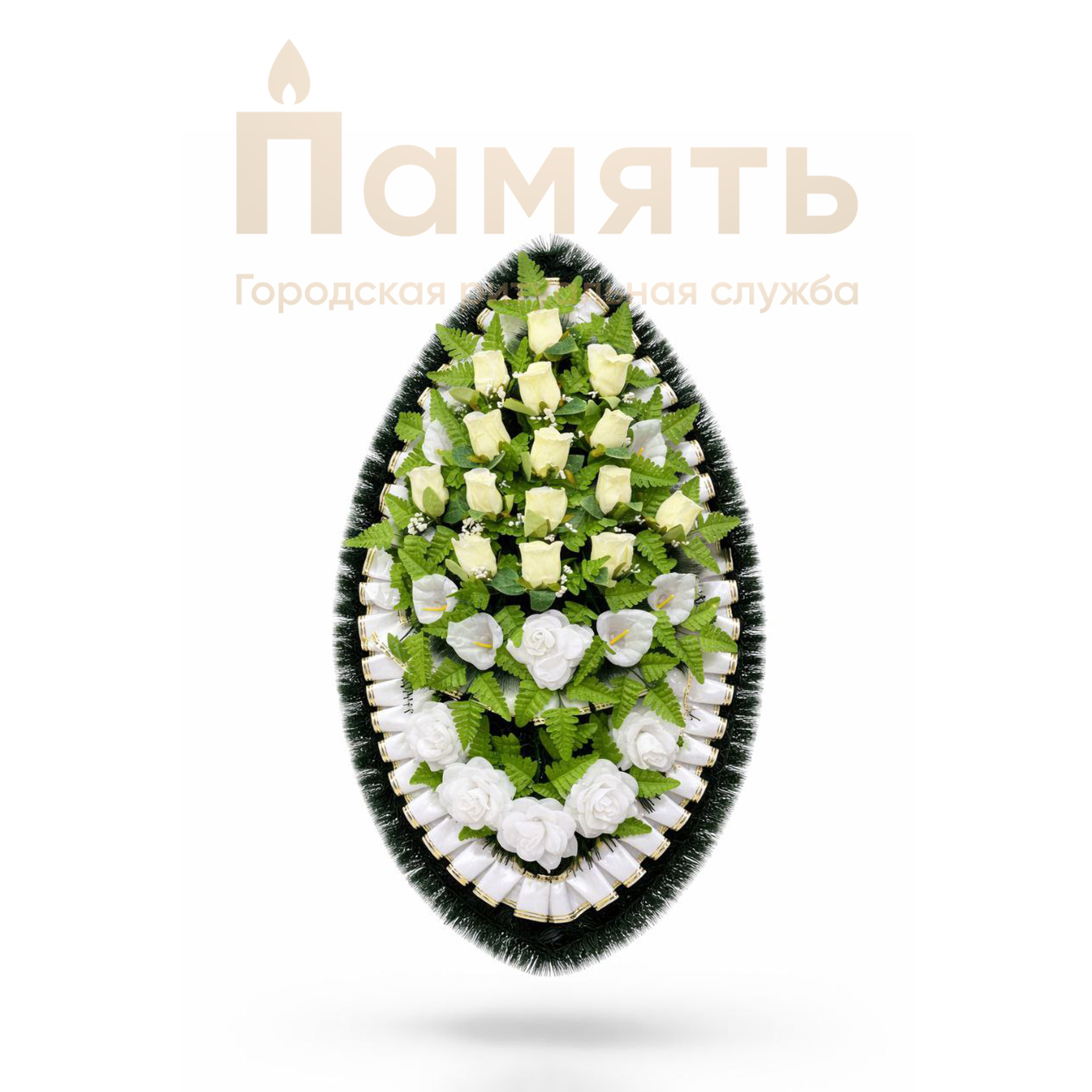 Венок Каспий - желтый, белый - композиция из искусственных цветов, традиционно овальной формы.