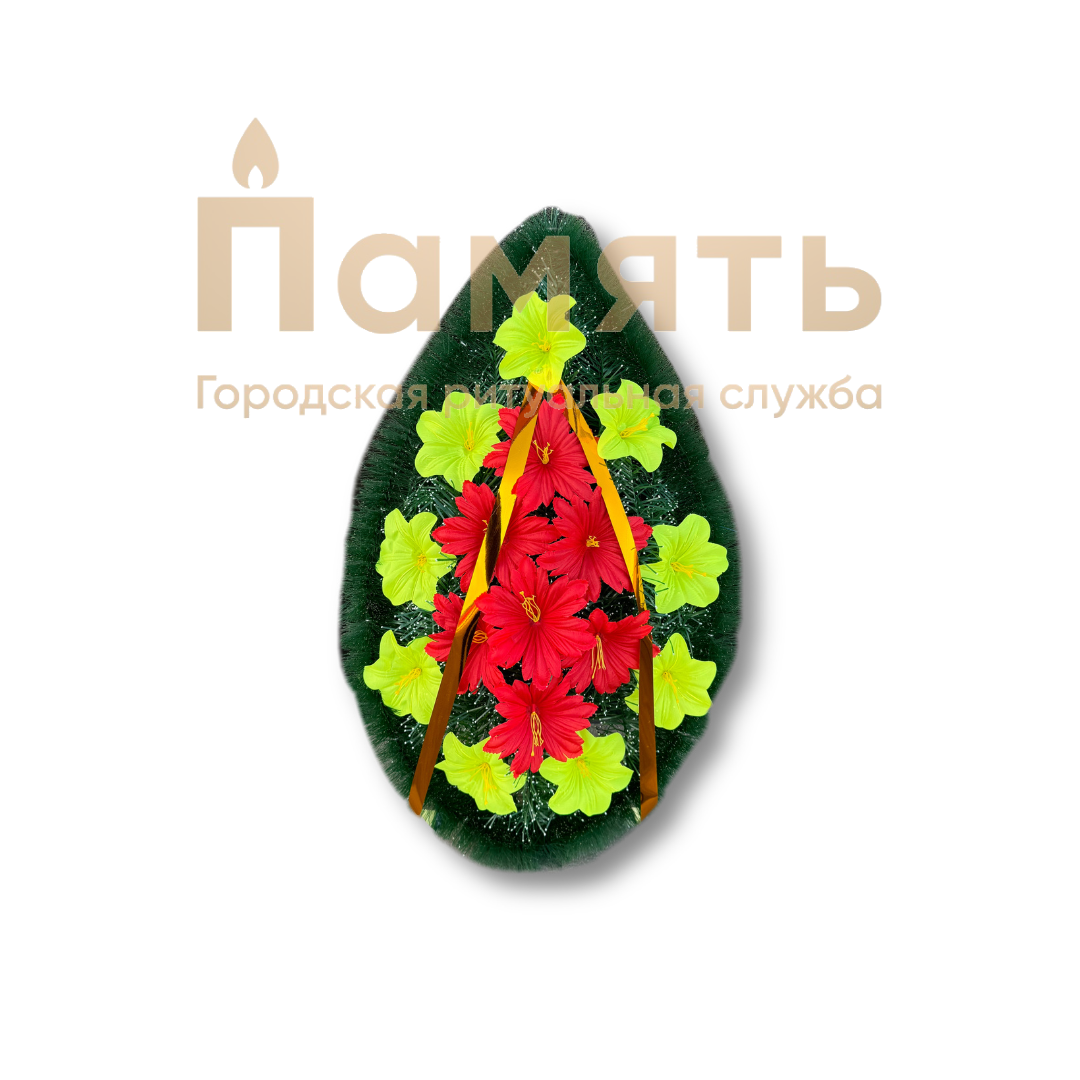 Венок ритуальный «Слеза» маленький - красный, желтый