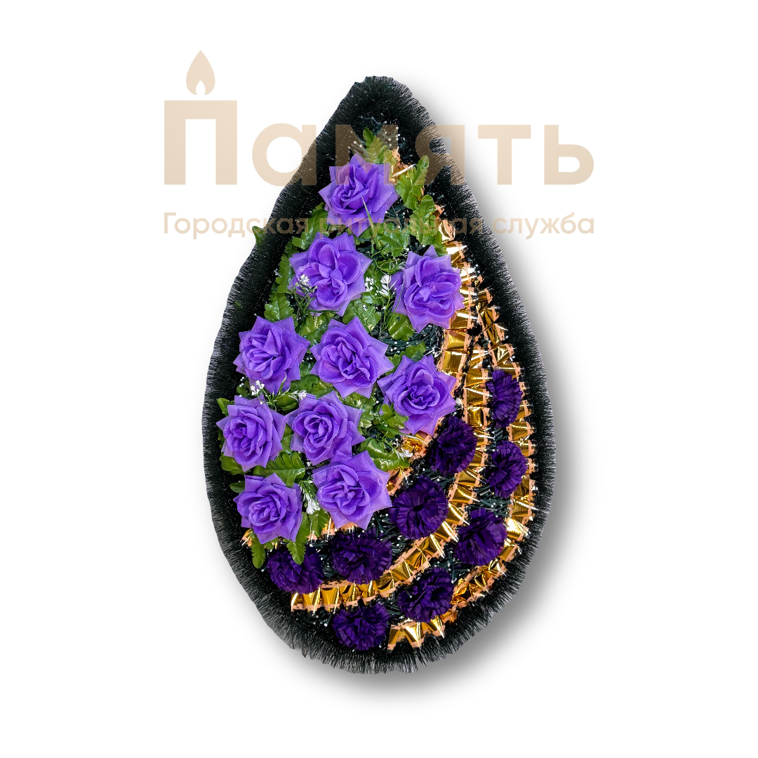 Венок Вечность Шелк - фиолетово – бордовый из искусственных цветов, композиция имеет традиционную овальную форму.