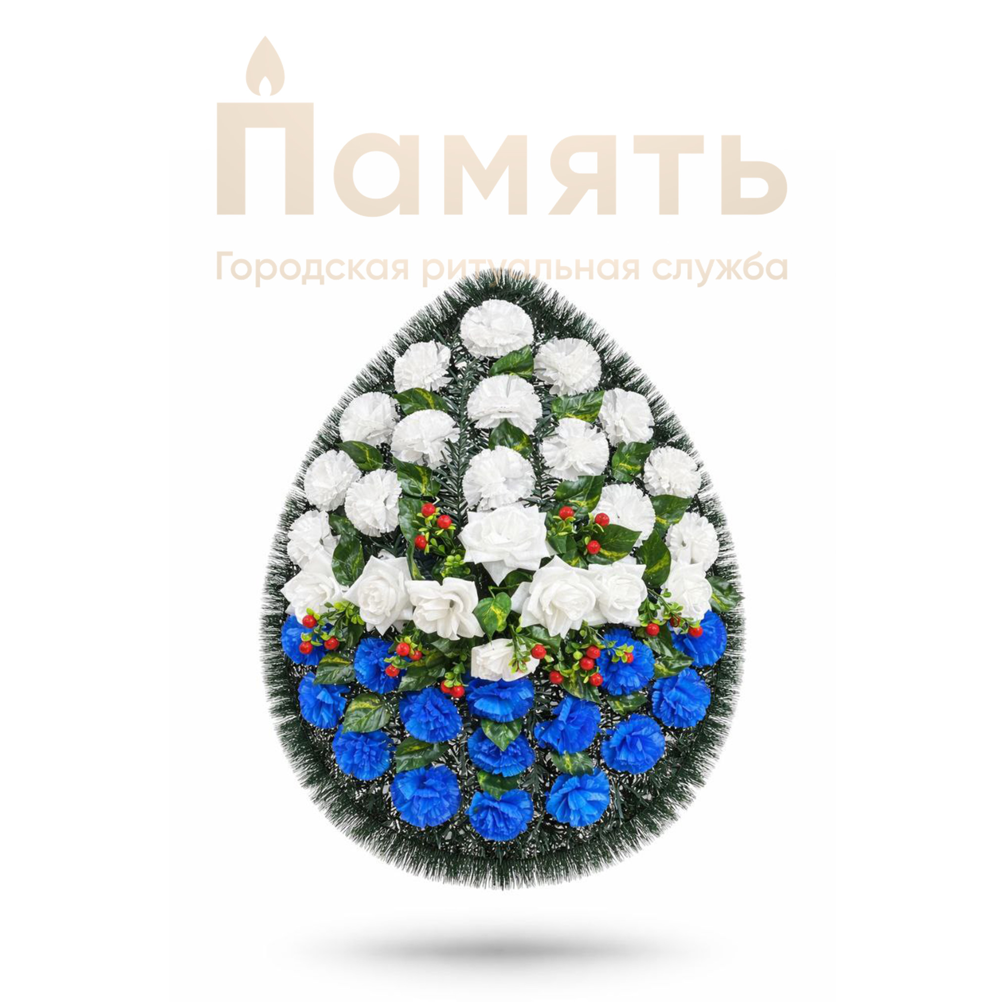 Венок Волга (100см) - белый, синий - композиция из искусственных, традиционно овальной формы.